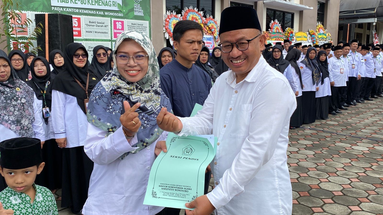 Momentum Peringatan Hari Amal Bakti (HAB) Kementerian Agama Republik Indonesia menjadi ruang kepedulian yang nyata bagi guru non-PNS dan siswa madrasah di Kabupaten Wonosobo. Melalui penyaluran bantuan sosial, Kementerian Agama menegaskan komitmennya untuk terus hadir, menyapa, dan menguatkan mereka yang berada di garis depan pendidikan keagamaan.